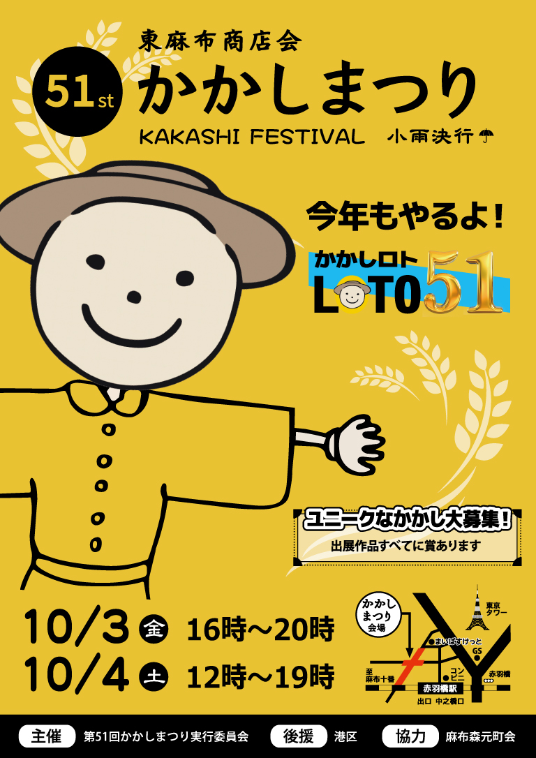 いよいよ明日! 10月3日(金)、10月4日(土)『麻布いーすと通り』にて、かかしまつり開催です!